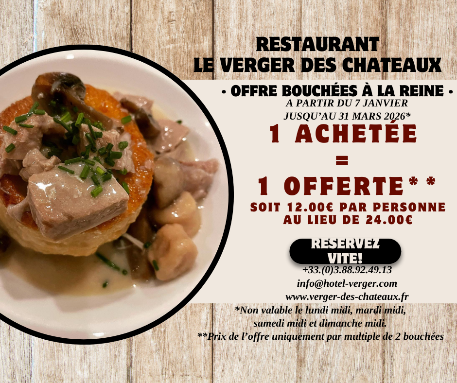 *Offre uniquement par paire de Bouchée à la Reine à 24€ les 2. Soit 12.00€ par personne au lieu de 24.00€.